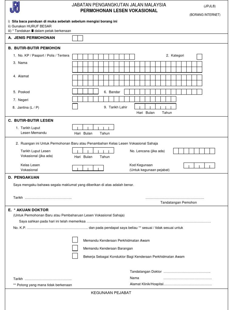 Jpjl8 Borang Permohonan Pembaharuan Lesen Gdl Pdf